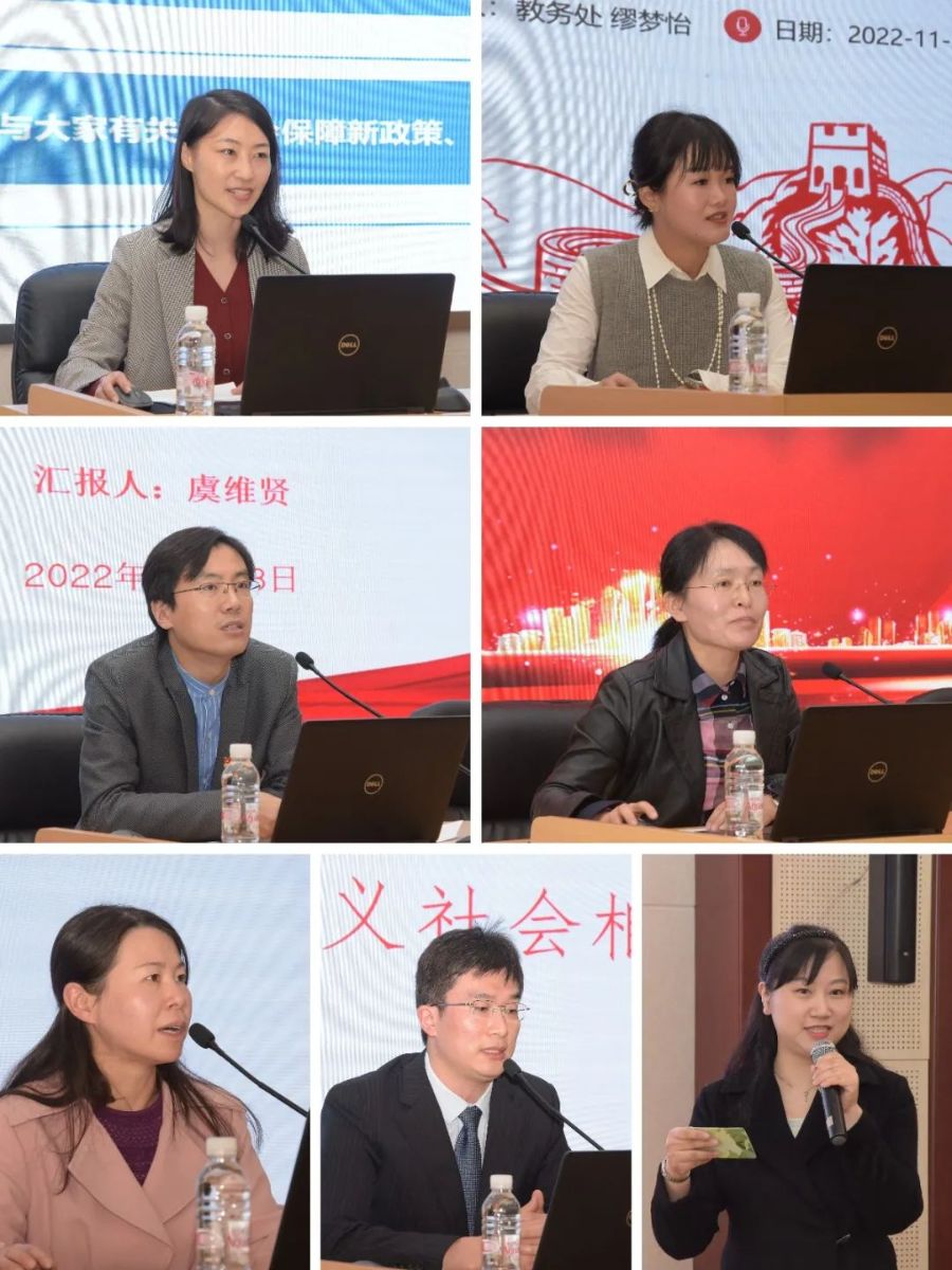 青年干部教师刘栋、缪梦怡、虞维贤、刘颖、刘霁雯、程洪猛等分别以“健全社会保障体系,持续增进民生福祉”“主流意识形态理论的历史演变及工作启示”“做新时代新征程的好青年,为祖国统一事业贡献力量”“从党的二十大报告透视看‘斗争’”“民营经济是推进中国式现代化的重要力量”“坚持我国宗教中国化方向:积极引导宗教与社会主义社会相适应的根本之道”为题,作了微党课展示。