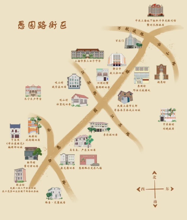 纵横交错的马路是历史刻画这座城市的笔划,经年累月的横撇竖捺塑造上海独特的历史文化空间。沿路而行,以城市空间串联历史文化,在移步换景中挖掘上海百年统战记忆,是上海市社会主义学院(上海中华文化学院)“寻足迹 品文化”统战文化专项研究持续多年辛勤耕耘的着力点和聚焦点。