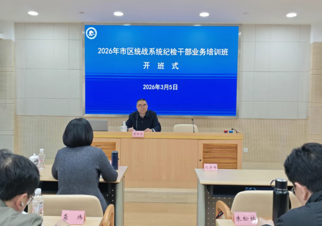 为深入学习贯彻党的二十届四中全会和二十届中央纪委五次全会、十二届市纪委五次全会精神,进一步提升统战系统纪检干部工作能力水平,3月5日-6日,市纪委监委驻市委统战部纪检监察组联合市社会主义学院举办“2026年市区统战系统纪检干部业务培训班”。市纪委监委驻市委统战部纪检监察组组长蔡桂其出席开班式和结业式并讲话。