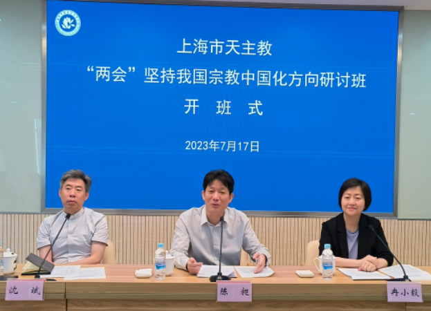7月17日-19日,上海市民族和宗教事务局、上海市社会主义学院联合举办“上海市天主教‘两会’坚持我国宗教中国化方向研讨班”。市民族宗教局局长陈昶出席开班式并作开班动员,市社会主义学院党组成员、副院长冉小毅主持开班式,天主教上海教区主教沈斌出席开班式。
