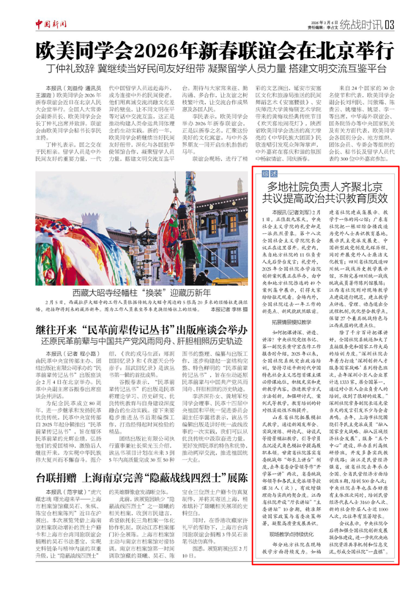 如何把课讲深、讲透、讲活?中央社院党组书记、第一副院长黄守宏在作工作报告时介绍,2025 年以来,全国社院系统突出政治培训,坚持习近平新时代中国特色社会主义思想首课主课必修课地位,积极充实和更新教学内容,推进教学方式方法创新,加强研讨式、案例式等教学,教育培训的针对性实效性不断提升。