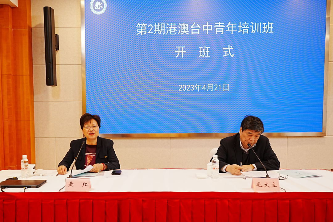 开班式上,黄红指出,本期培训班紧扣主题,在培训对象和教学内容上体现出三个特点:一是聚焦港澳台群体。二是聚焦青年人才。三是聚焦理论学习。她结合港澳台中青年的实际,对大家提出三点希望:一是要开拓眼界,善于学习。要把学习作为一种责任、一种精神追求、一种生活方式,同时要坚持学以致用,努力成为可堪大用、能担重任的栋梁之材。二是要勇于创新,把握机遇。港澳台中青年既要有逢山开路、遇河架桥的意志,又要有探索真知、求真务实的态度,从而在创新中不断积累经验,勇往直前。三是要厚植情怀,实践担当。港澳台中青年要在锲而不舍、驰而不息中实现自己的梦想,要为发展壮大爱国爱港爱澳力量,为推动两岸关系和平发展、融合发展贡献智慧和力量。